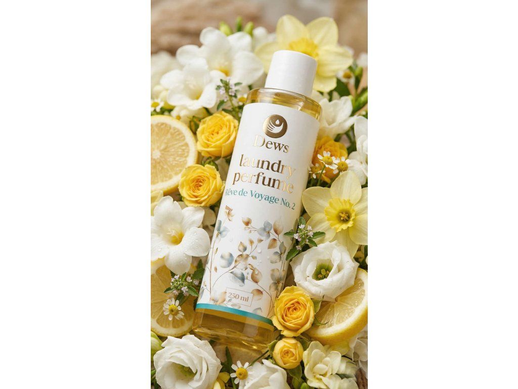Rêve de Voyage No. 2 je váš tekutý cestovný pas – viac než len parfum na bielizeň. Je to vstupenka do vašej obľúbenej destinácie a sviežosť ako po letnom výlete do prírody, ktorú si môžete užívať každý deň. Tóny: Citrusová, kvetinová, drevitá